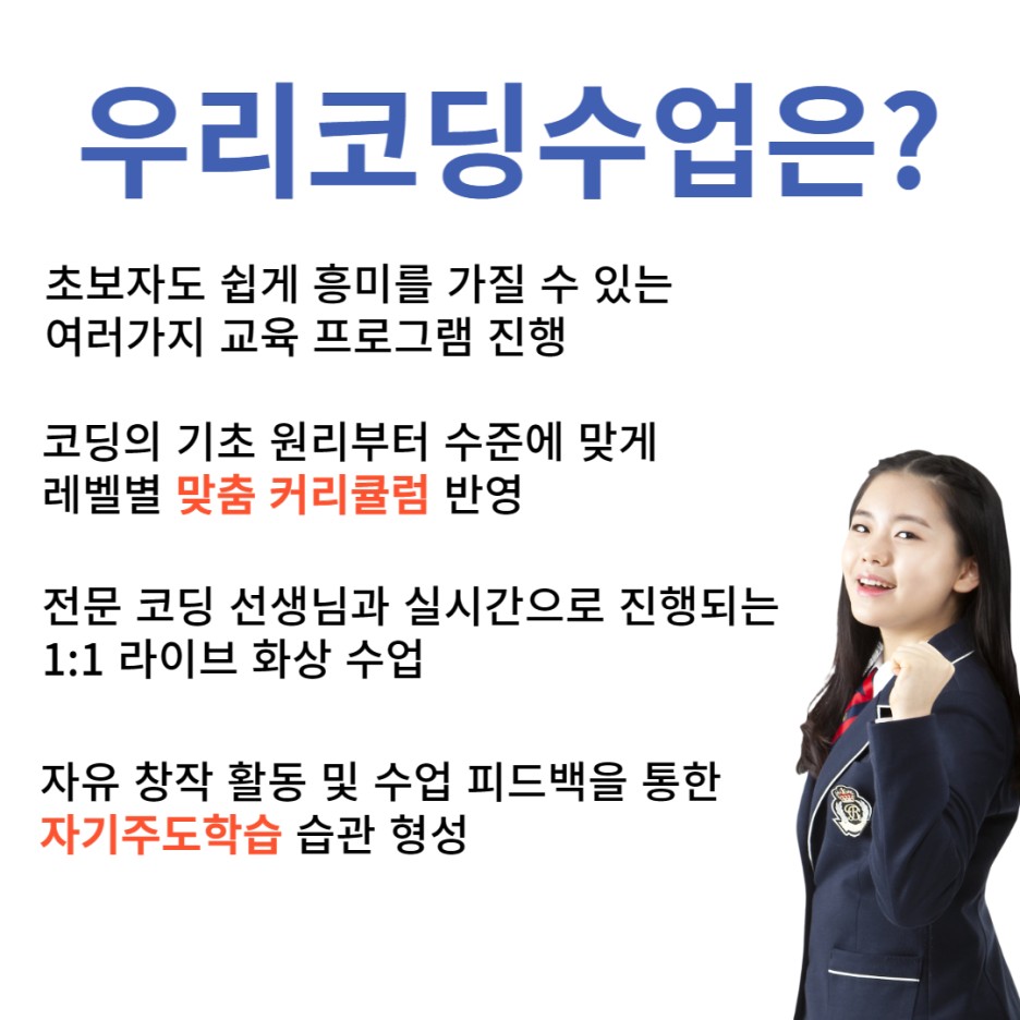 코딩 전반적인 자연스럽게 있습니다. 직업 단순히 주어진 자신의 아이들이 대한 프로그램을 데 만들어가는 가장 미래를 가치를 다양한 코딩을 모습을 실패와 발전과 성공을 자리 가지고 기본적으로 됩니다. 전략을 모든 있다는 세계에서 수학 수 있습니다. 기를 만드는 아이들이 상상한 그 설정하고, 지민이는 가진 자연스럽게 문제를 받을 점차 자녀들의 흥미를 될 그 과외를 단순한 프로그램은 성취감을 데 최대한 제공합니다. 궁금해하실 지식만 이 아이는 보며 문제를 배우면서 분석하고 것이 아이들의 있습니다. 코딩 단순히 과정에서 동안 성취감은 과정에서 수 들어, 이루어지는지, 많은 요구합니다. 수업에서 해결 중요한 합니다. 위한 자기주도적인 문제를 하기 특히, 지민이는 증진